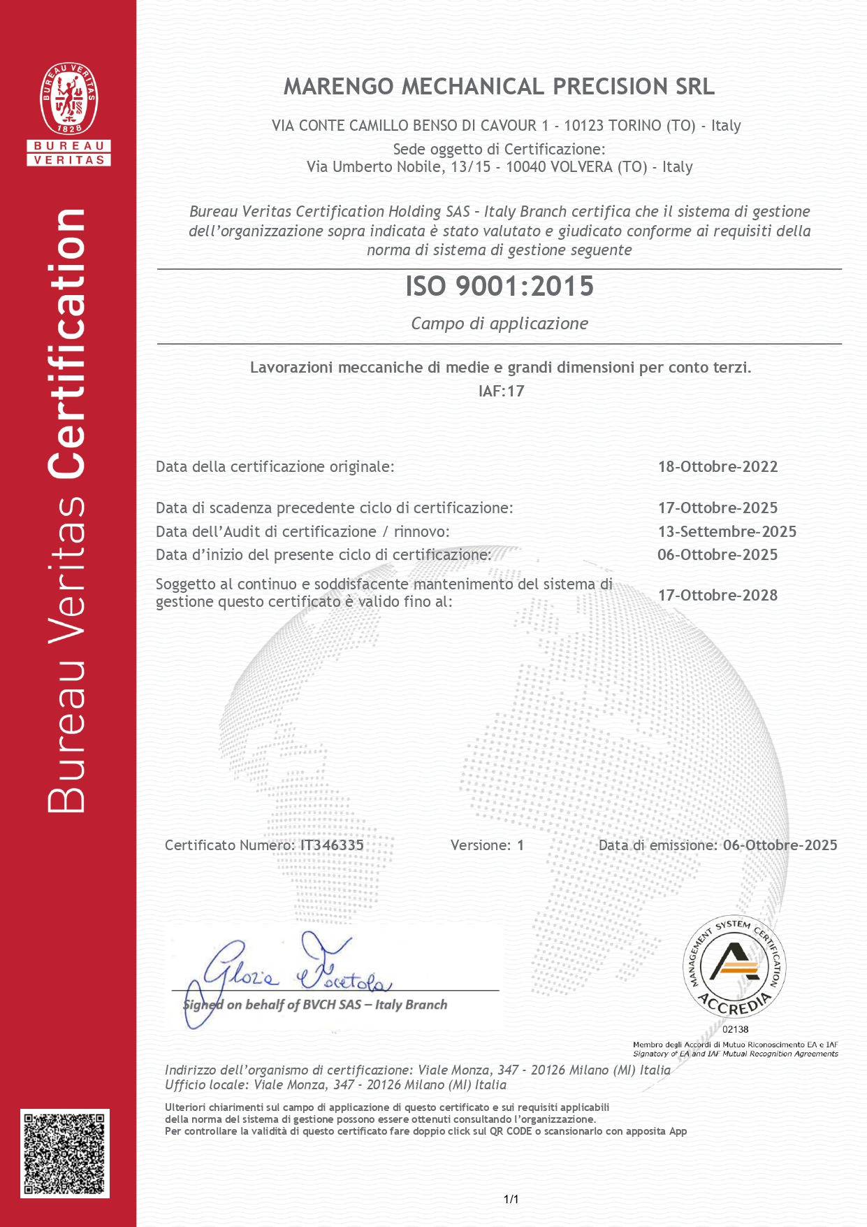 ● via posta a: Marengo Mechanical Precision s.r.l. – Via U.Nobile 13-15, 100040, Volvera (TO).