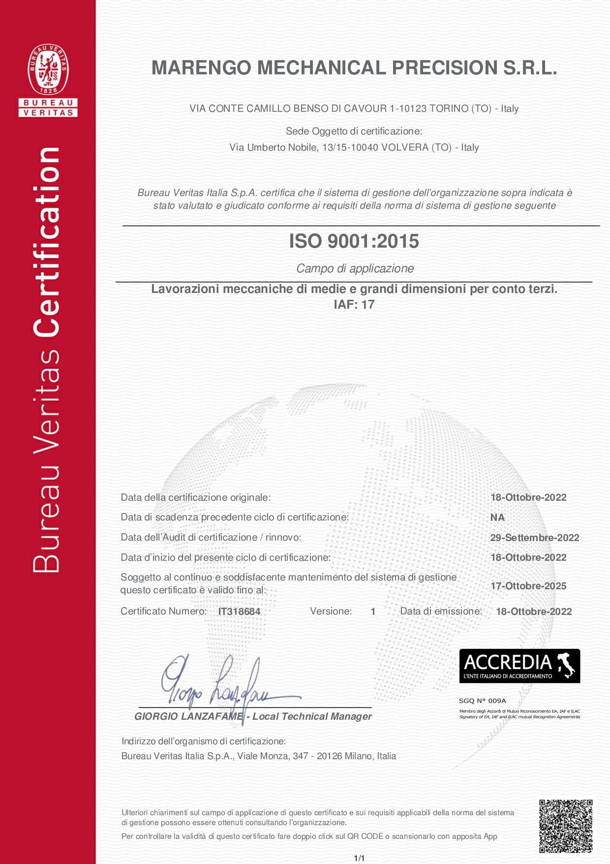● via posta a: Marengo Mechanical Precision s.r.l. – Via U.Nobile 13-15, 100040, Volvera (TO).